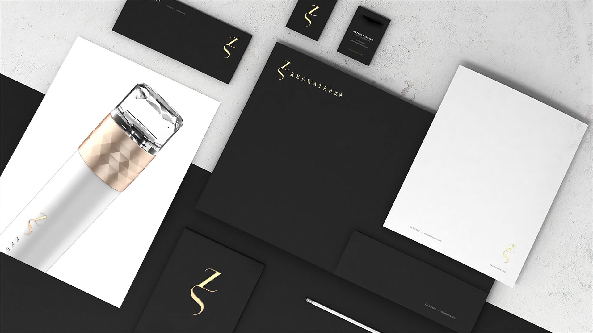 品牌標志,融合首字母“Z、S”及產品核心“水”的屬性,打造成專屬于止水的品牌符號,生動展現了品牌的高端、時尚、高雅的調性。