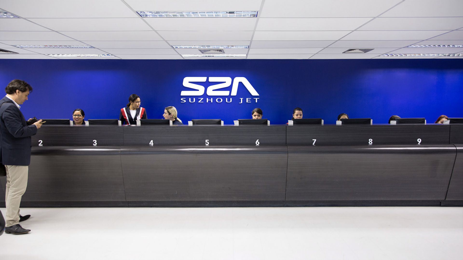 我們在進行標志創意時,以公司英文名(Suzhou Airlines)簡稱SZA為品牌標志創意點,結合飛機負形設計,不僅傳承自身品牌基因,簡潔易記,而且具有國際化全球化的特征;LOGO整體包容性強,低調、穩重、大氣且與時俱進。