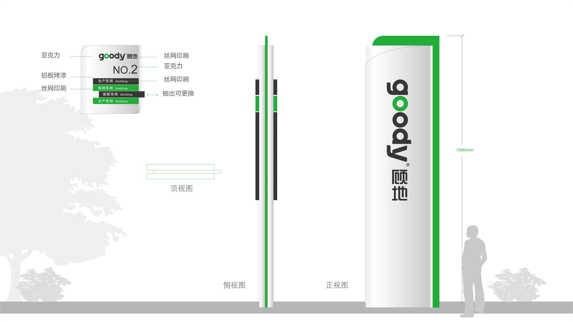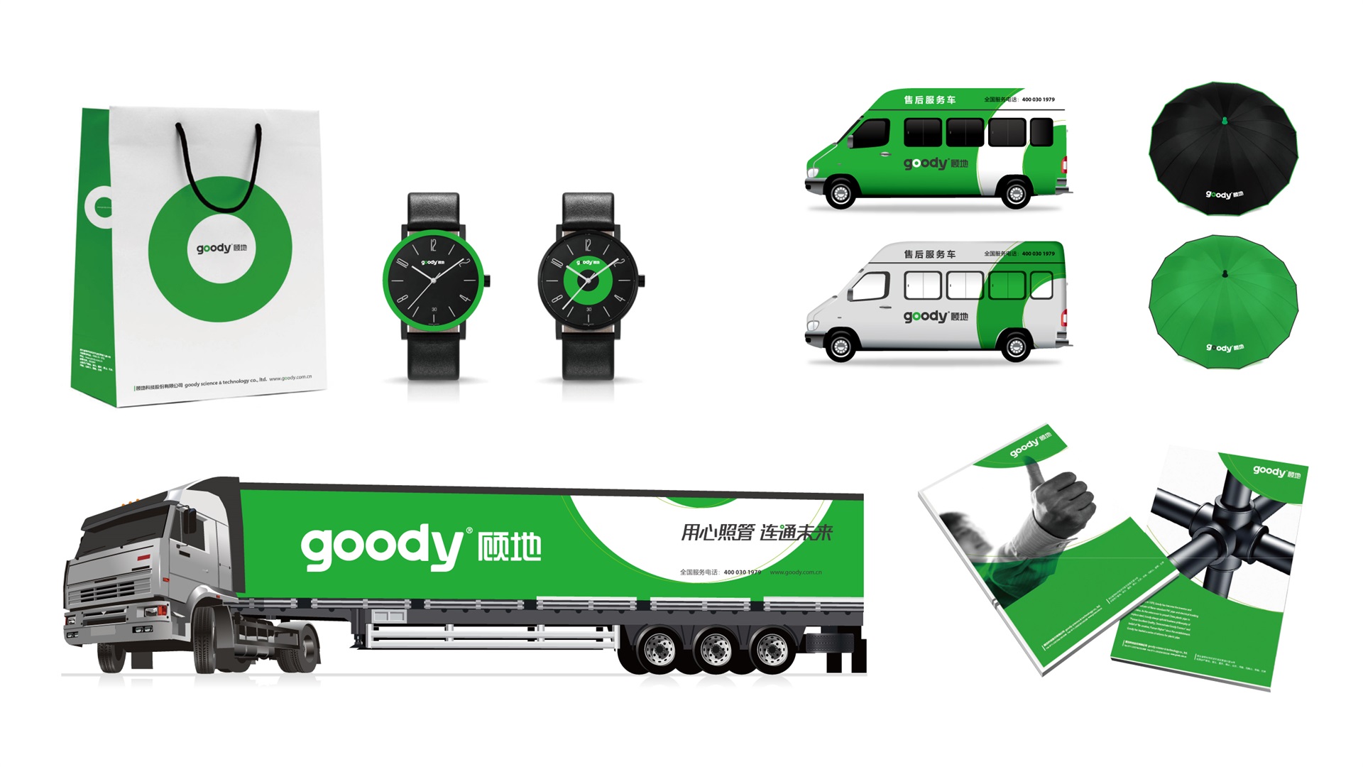 標志圍繞顧地的英文名稱Goody做了精雕細琢的藝術創作,標志的字體形態、間距、顏色、角度等每個細節的設計都與顧地企業的精益求精、品質第一、以及國際化理念相吻合。